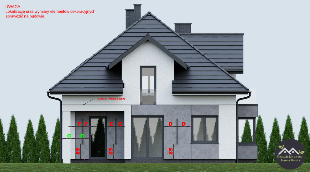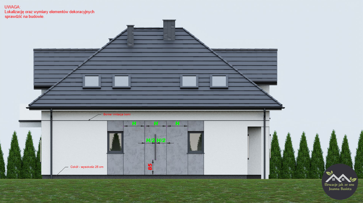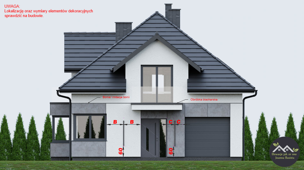 Podam Ci wszystkie potrzebne informacje dotyczące wymiarów elementów dekoracyjnych znajdujących się na elewacji (jeśli nie są wynikowe).